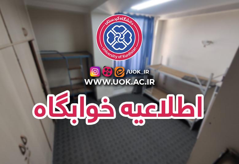 ضمن عرض خیر مقدم و تبریک به مناسبت قبولی در دانشگاه کردستان بدین‌وسیله به اطلاع داشجویان واجد شرایط متقاضی خوابگاه می‌رساند که سامانه اسکان خوابگاهی مرتبط با صندوق رفاه به آدرس اینترنتی refah.swf.ir جهت درخواست اسکان واجدین شرایط در دسترس متقاضیان محترم می‌باشد.